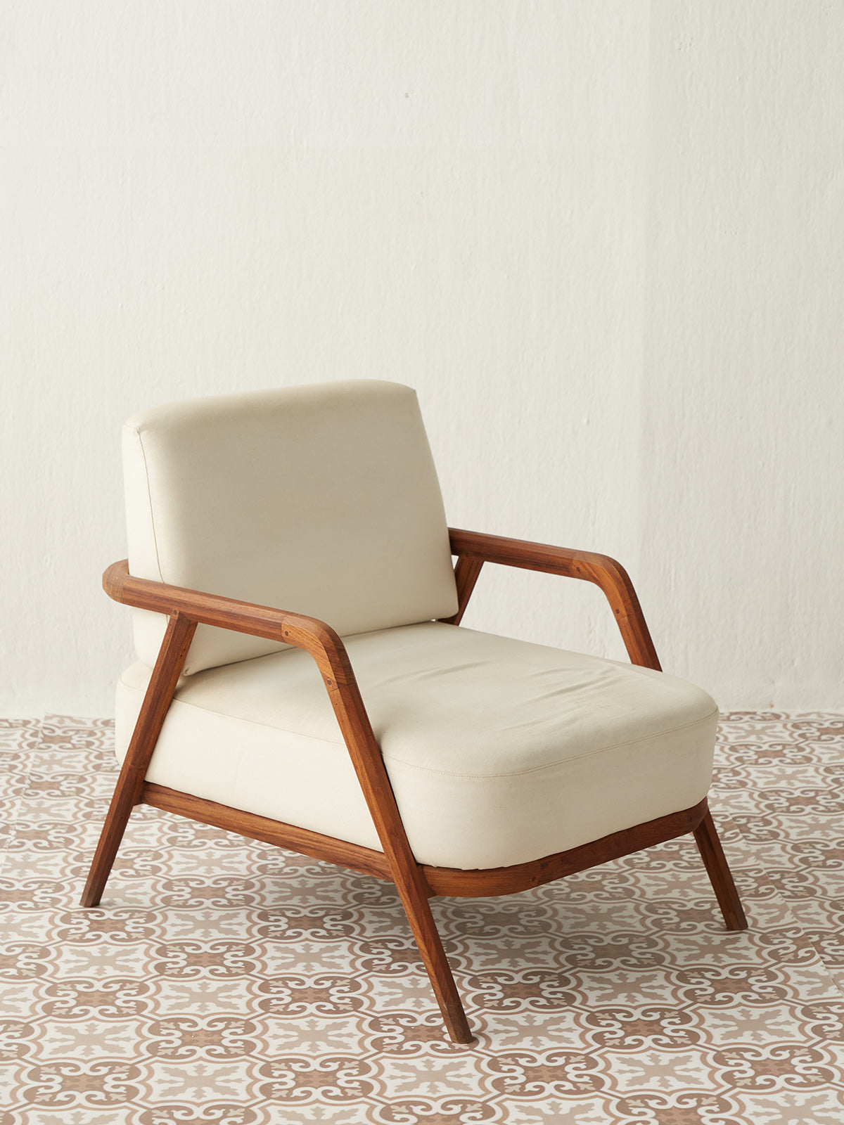 The material mix in this collection has leather, brass, cast aluminium, burnt wood, oiled teak wood, canvas and other elements.