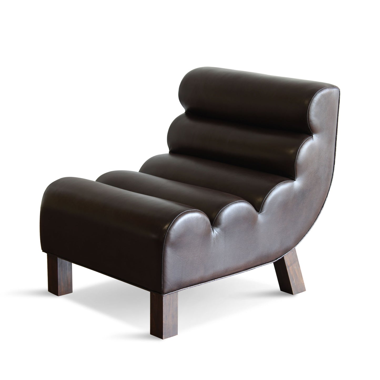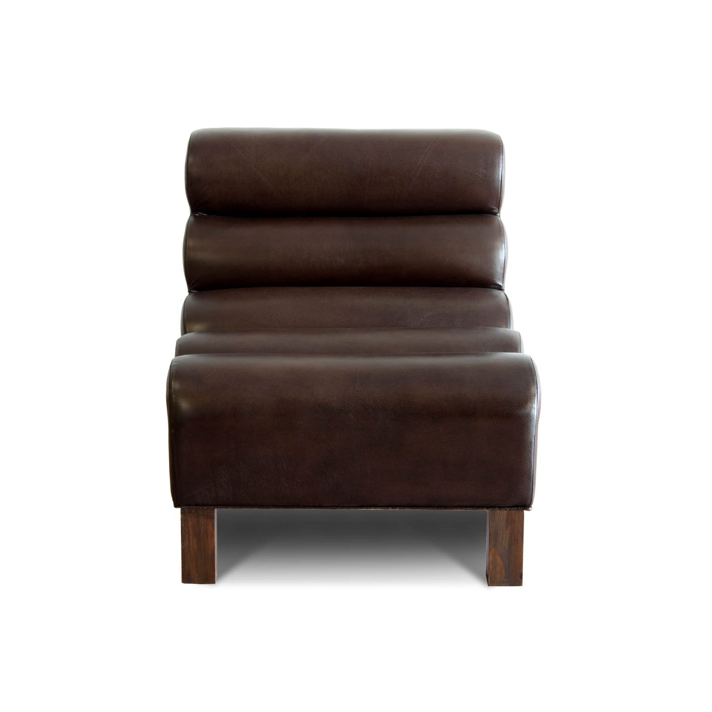 "Soft, supple leather smoothly goes over a bumpy foam and rubber surface. Keeps you comfortably in place and prevents you from slipping down. Legs are made of polished teak wood. The leather is hand-stained and highly distressed."